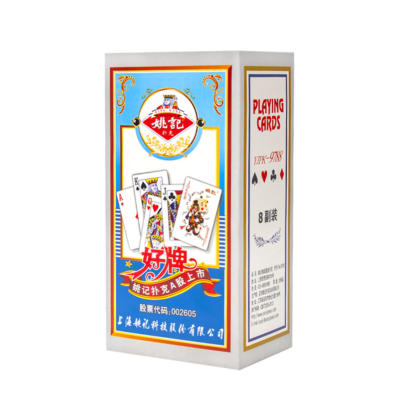 上海姚记扑克股份有限公司,创建于1994年,扑克牌十大品牌,上海市著名商标,国内大型现代化扑克牌生产基地,专业从事扑克牌生产、印刷、销售等的现代化企业