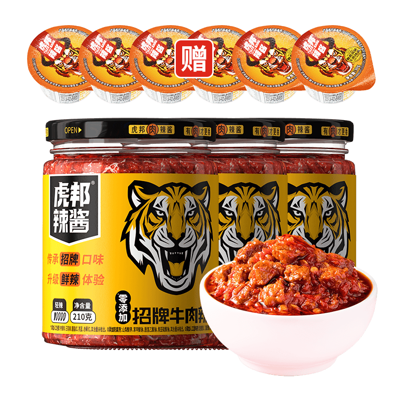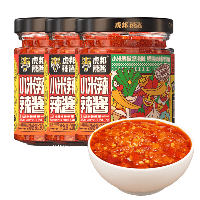 国内新派辣椒酱品牌。虎邦辣酱主张新派食辣,2017年,虎邦辣酱联合各大外卖平台主打50g外卖统—标配装,—餐—盒,深受消费者的青睐美食,是辣酱中的“网红”。