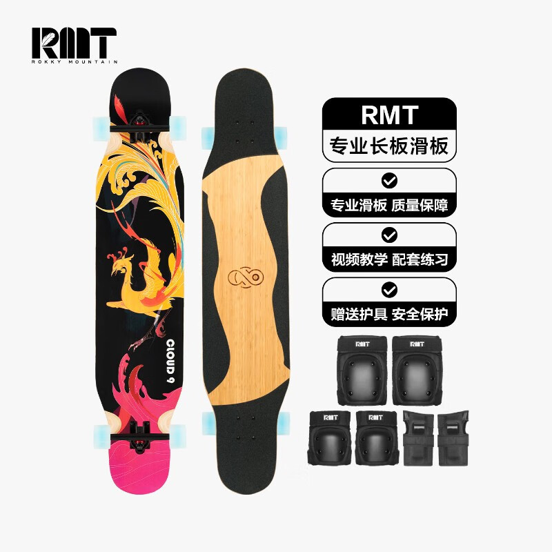 RMT是“中国国家滑板队”官方支持伙伴,为国家队提供训练专用滑板。RMT滑板品牌于2011年成立,品牌全称为ROKKY MOUNTAIN,是国内专注于做专业板的滑板品牌,一直致力于专业板的设计、研发与推广,依托母公司二十多年滑板整板及其滑板配件的生产与制造经验,目前主要有双翘板(7.5″、7.75″、8.0″、8.25″)、复古板(8.5″和8.75″)、鱼板、舞板等专业板滑板,美式设计的加枫板获得了国内外滑手和滑板爱好者的一致好评。