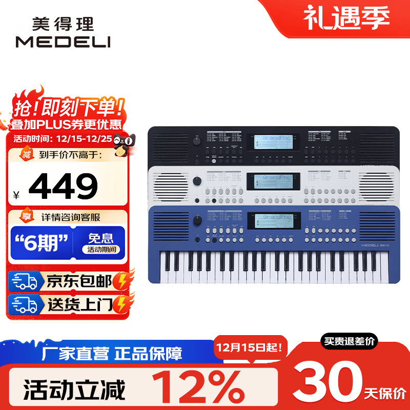 ![美得理(MEDELI)[学生适用 老师推荐]电子琴61键成人儿童零基础通用入门初学A100S](https://img14.360buyimg.com/pop/jfs/t20271215/374201/15/14185/121741/693f700dF4db36cb6/0a023203203aa321.jpg)