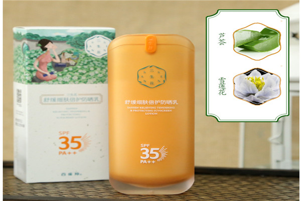 三生花防晒霜的质地是乳白色的乳液质地,,是比较好推开的而且在脸上的成膜速度也比较快,但是三生花防晒霜总体的防晒指数并不是很高,所以比建议在夏天紫外线辐射比较强烈的时候使用,三生花防晒霜是比较适合在换季的时候使用的。三生花防晒霜中还含有比较多的镇定的成分,所以说使用敏感肌是完全可以使用这款防晒霜的,而且还有很好的抑制肌肤出现过敏情况的效果。