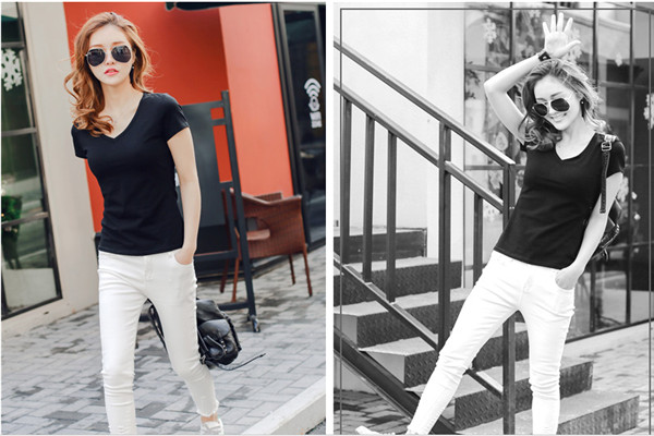 黑半袖是比较经典的,可以搭配任何颜色的服饰。如果想打造简约风的话,可以用黑半袖搭配白色裤子和小白鞋,简单大气又不失魅力。如果想打造酷帅风的话,可以用黑色半袖搭配黑色皮裤和黑色马丁靴,虽然一身黑色的搭配会有些无趣,但整体看起来还是比较酷飒的。如果想打造甜美风的话,可以用黑色半袖搭配白色的纱裙和奶奶鞋,可爱甜美中带有一丝丝帅气,看起来非常迷人。如果想让穿搭更有特色的话,可以用黑色半袖搭配印花长裤,能凹出潮人范儿。如果想打造小清新风的话,可以用黑色半袖搭配浅蓝色的牛仔裤,既清新又简约,非常好看。