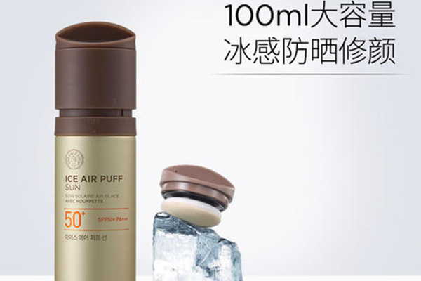 100ML159元,这款清凉美肌气垫防晒乳蕴含向日葵芽提取物及甘油等成分,提升肌肤水润度,涂抹后可以给肌肤降温,带来冰凉快感。重要的是粉扑设计,无需用手,更卫生更便捷,这也是少见的防晒霜在外包装上的设计。