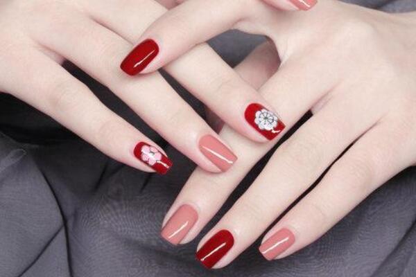 3、之后还需要看季节来搭配,一般春季比较适合用橘红色、粉红色这些诶指甲油搭配,而到了夏天推荐草莓色、玫瑰色搭配。秋季比较流行茶色搭配褐色,冬季适合蓝色和玫瑰红的颜色。