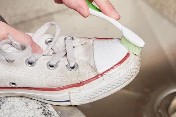 帆布鞋在清洗时,先将鞋垫、鞋带从鞋子上拆下来,先洗鞋面,将两只鞋子互相拍打去除表面灰尘,然后放在水龙头下冲洗打湿,之后用刷子蘸洗涤剂刷洗鞋面并漂洗干净。然后洗鞋子底部和鞋底侧面,可使用橡皮擦清洗橡胶底再用湿布擦干。接着是鞋带和鞋垫的清洗,其中鞋带放水里再摸上清洗剂即可洗净,鞋垫则需要用刷子沾清洗剂刷洗。
