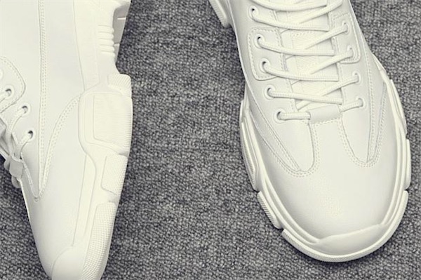 当白鞋的鞋边是橡胶材质时,就可以使用溶剂型的清洁剂来解决,比如说香蕉水就是这类清洁剂,将它涂在鞋边能够对橡胶进行非常细微的溶解,即可去除掉发黄的部分,但注意这些清洁剂一定不要涂在斜面上。