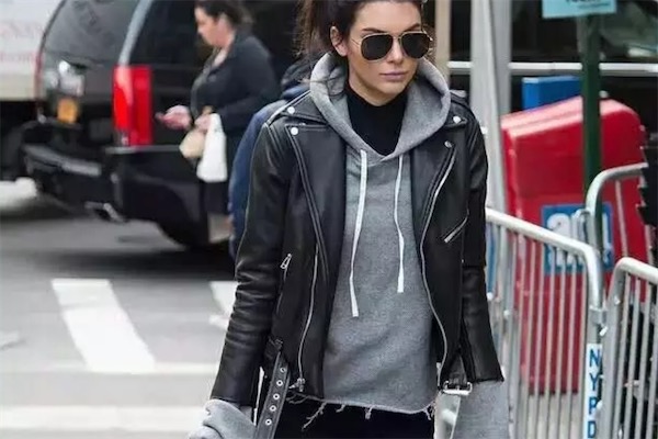 3、皮衣+连帽卫衣