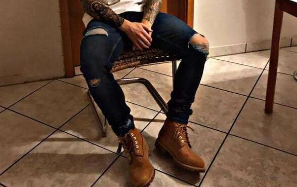 添柏岚虽然是户外品牌,但它的大黄鞋其实可以作为时尚单品,与破洞裤搭配效果也很好,喜欢个性和时尚的人这样穿是非常好看的。
